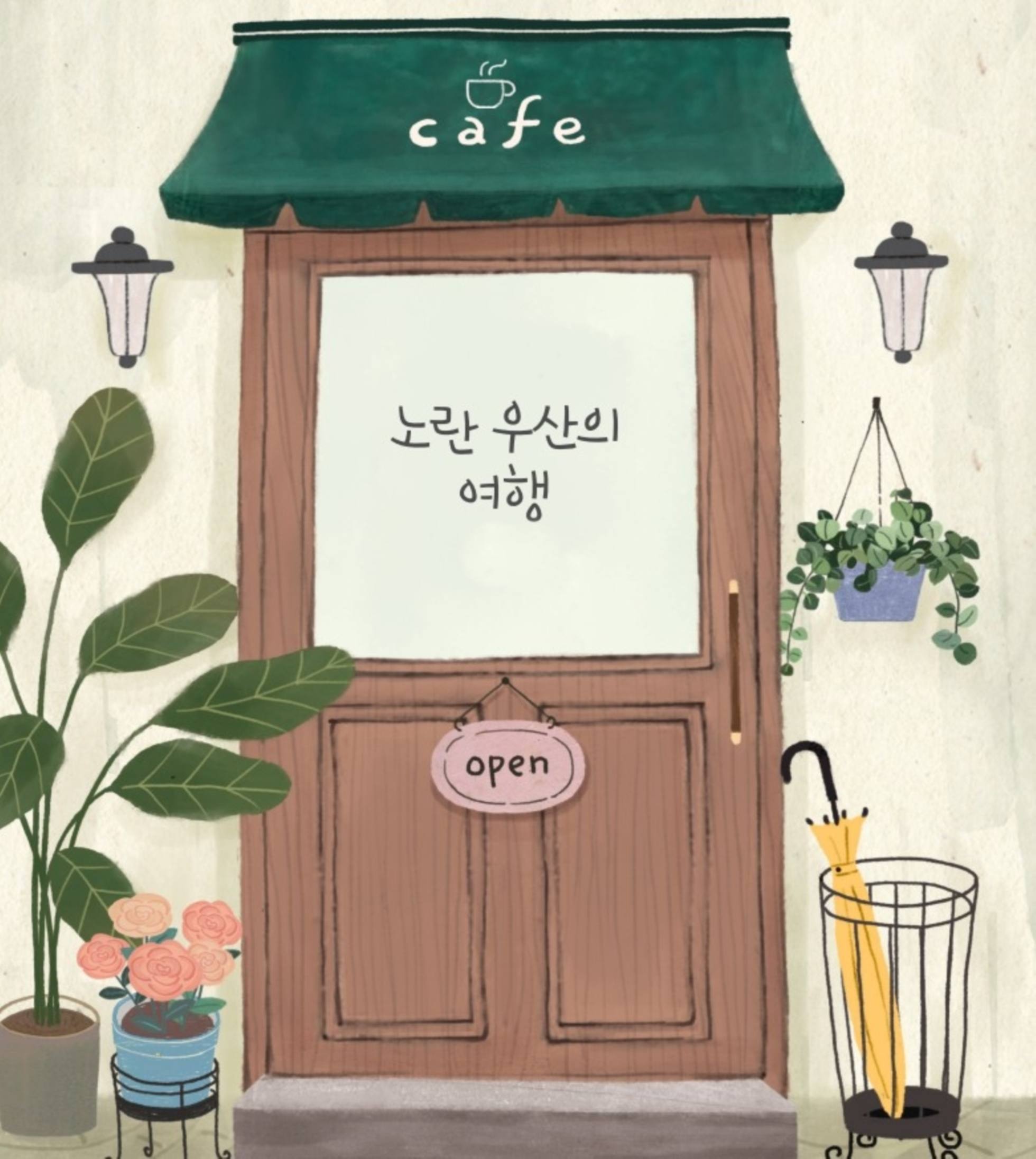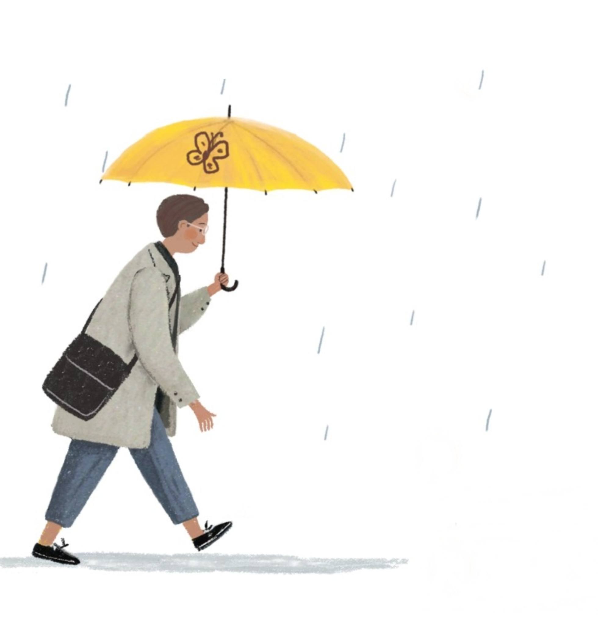 마지막 손님이 자리를 뜨자, 나이 든 주인은 느릿느릿 카페를 정리하기 시작했습니다. 문에 걸린 팻말을 ‘Close’로 돌린 뒤, 컵을 씻고, 테이블을 닦고, 바닥을 청소했지요. 마지막으로 문밖에 있던 우산꽂이를 안으로 들였습니다. 그런데 낯익은 우산이 보였습니다. 얼마 전 손님에게 준 노란 우산이었습니다.